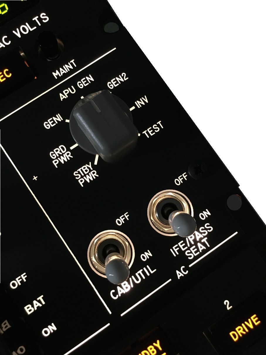 • Boeing style BACKLIGHTED knobs for DC and AC METER SELECTOR rotary switches